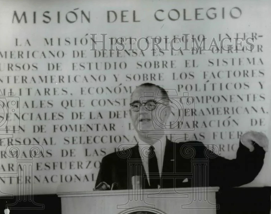 Vice President Lyndon B. Johnson speaks to the Inter-American Defense College Graduating class (formerly Inter-American Military College).